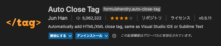 開始タグを書くと、自動で終了タグを書いてくれるプラグインです。
