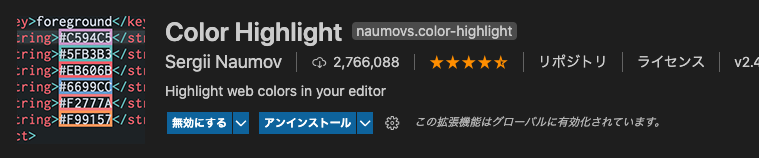 カラーコードを書いた時に色を付けてくれます。